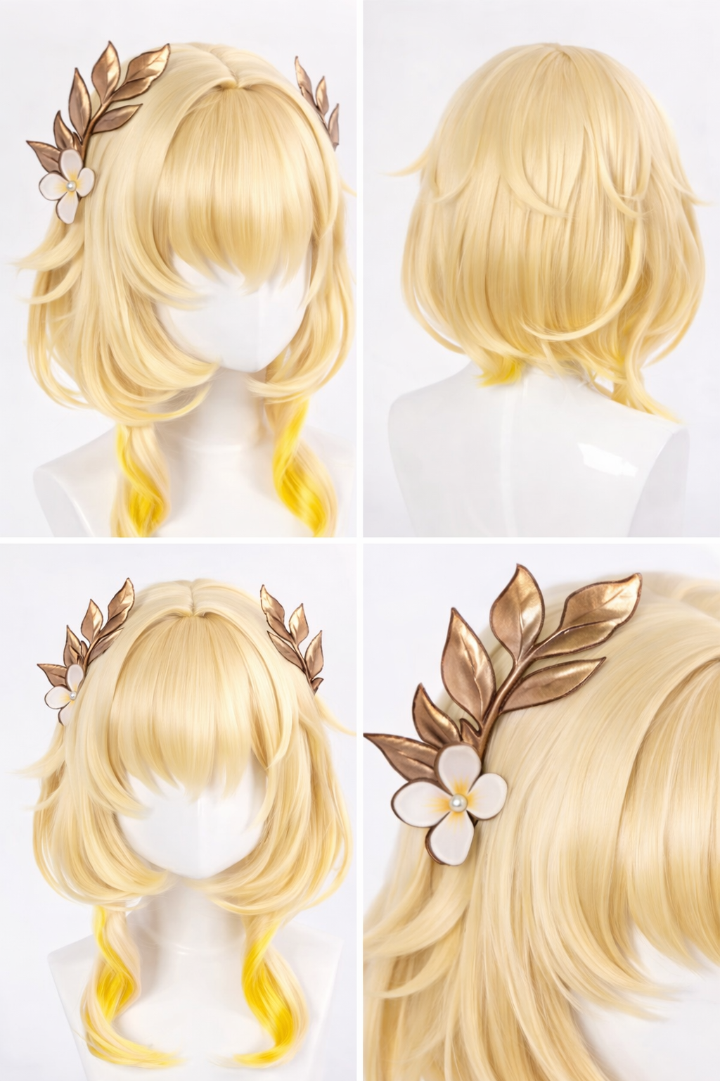 • Optional Signature Wig: Complete the transformation with the optional add-on wig, featuring her beautiful layered blonde waves and golden laurel wreath hair accessories.
